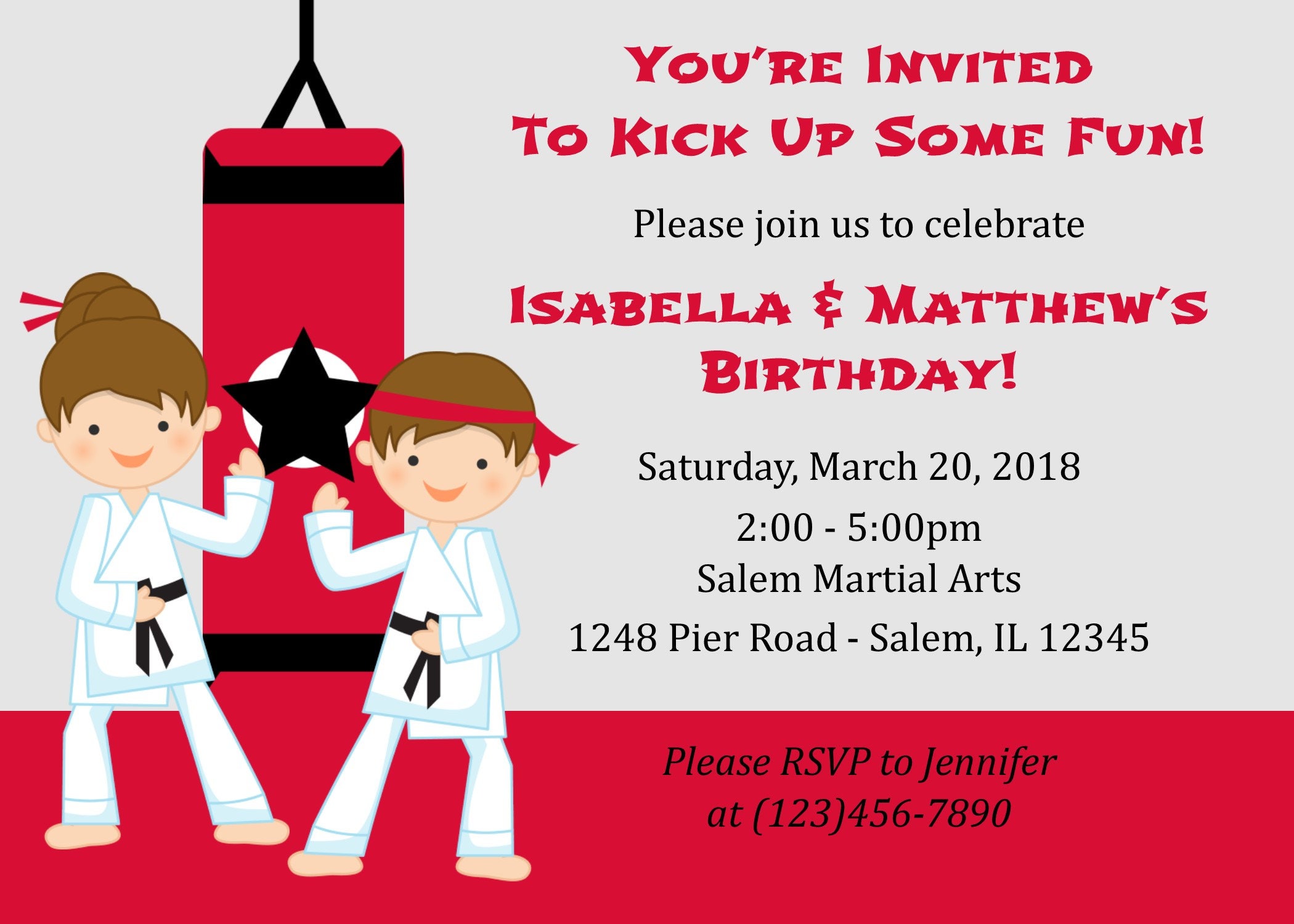 Karate Birthday Invitation For Two Digital File Karate Etsy Uk